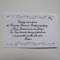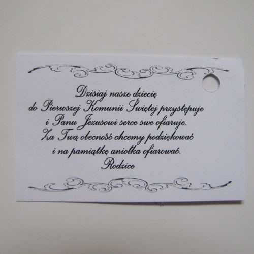 Do figurki dołączony jest tekst podziękowania za obecność w uroczystym Dnui Pierwszej Komuni Świętej.