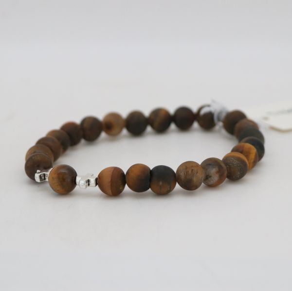 Bransoletka męska z kamieni naturalnych oraz metalowych elementów. Całość na gumce.