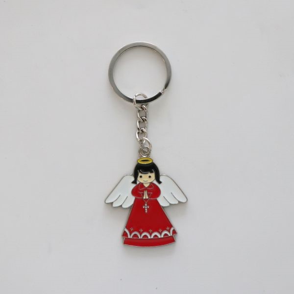 Brelok metalowy z wizerunkiem Anioła Stróża.