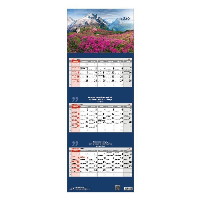 Kalendarz wyróżnia zachwycająca grafika z górskim krajobrazem oraz mądre cytaty, dzięki którym Twoje wnętrze będzie wyglądać pięknie i profesjonalnie.