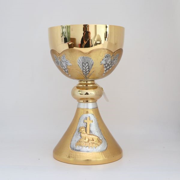 Kielich mszalny złocony z wizerunkiem Baranka.