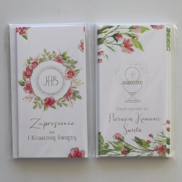 Zestaw zawiera 10 sztuk zaproszeń oraz białe koperty.