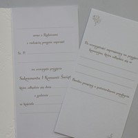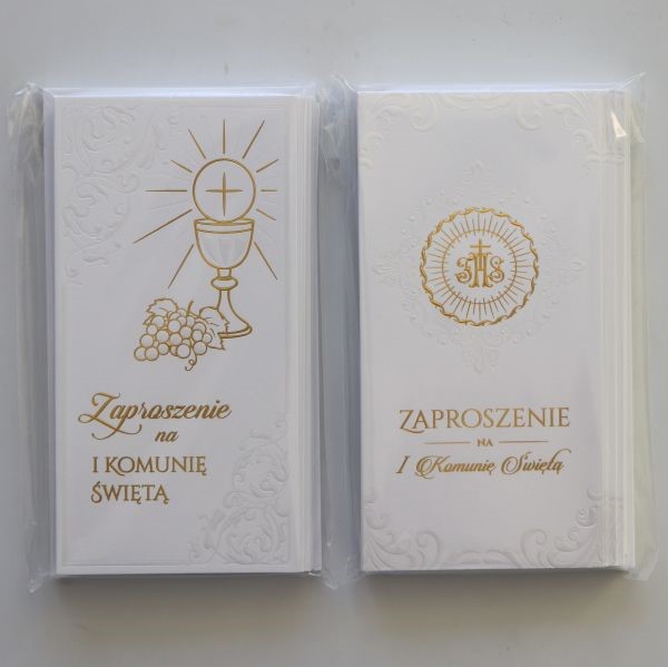 Zestaw zawiera 10 sztuk zaproszeń oraz białe koperty.
