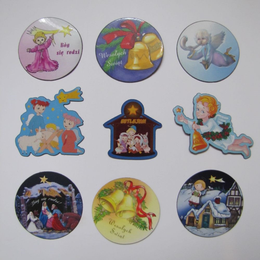 Magnes ma grubość 1 mm, idealny do przymocowania na lodówkę lub inne metalowe powierzchnie. Cena dotyczy 1 sztuki. Zdjęcie przedstawia przykładowe wzory magnesów.