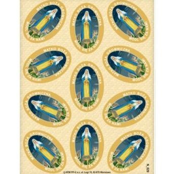 Zestaw naklejek z motywem religijnym o tematyce maryjnej.