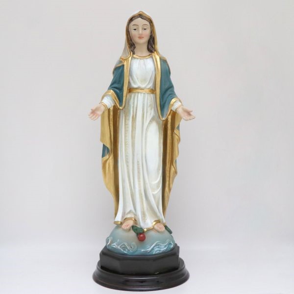 Figura z masy ceramiczno-podobnej przedstawiająca Matkę Bożą.