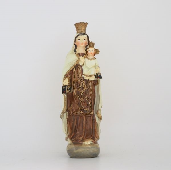Figura z tworzywa sztucznego przedstawiająca Matke Bożą Szkaplerzną.