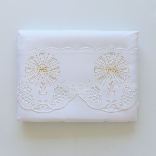 Gotowy obrus o eucharystycznym ornamencie na ołtarz.