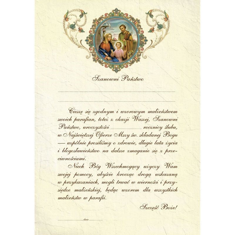 Pamiątka Jubileuszu zawarcia Sakramentu Małżeństwa.