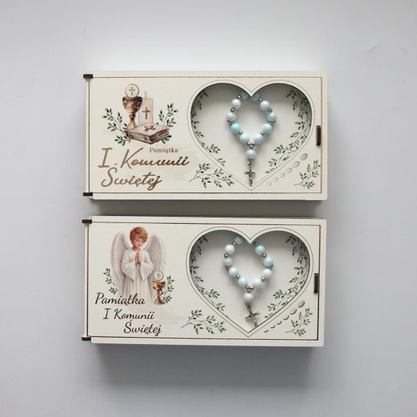 Pudełko komunijne (KW) z różańcem /niebieskie