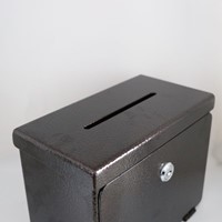 Pancerna skarbonka do montażu na ścianę kaplicy/ kościoła. W zestawie kluczyki do skarbonki.
