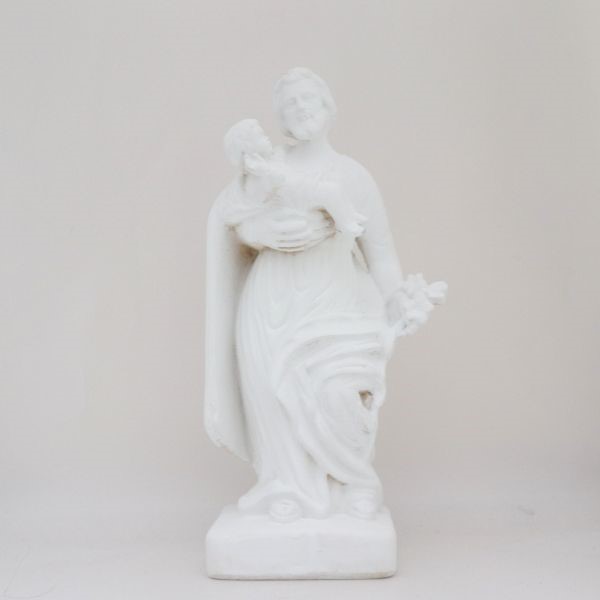 Figurka przedstawiająca Św. Józefa, wykonana z gipsu.