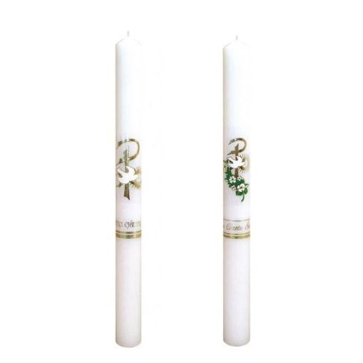 Świeca chrzcielna ozdobna naklejką. Zdjęcie przedstawia przykładowe wzory świec. Cena dotyczy 1 sztuki świecy.