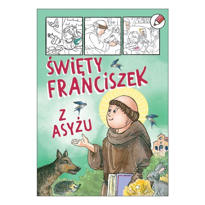 Poznaj historię świętego, który rozmawiał ze zwierzętami jak z braćmi i siostrami! Ta wyjątkowa kolorowanka w przystępny i ciekawy sposób opowiada o życiu Franciszka – od dzieciństwa w Asyżu, przez młodzieńcze marzenia o rycerstwie, aż po decyzję o życiu w ubóstwie i całkowitym zaufaniu Bogu. Dzieci odkryją, dlaczego nazywany jest Biedaczyną z Asyżu oraz jak narodził się zakon franciszkanów.