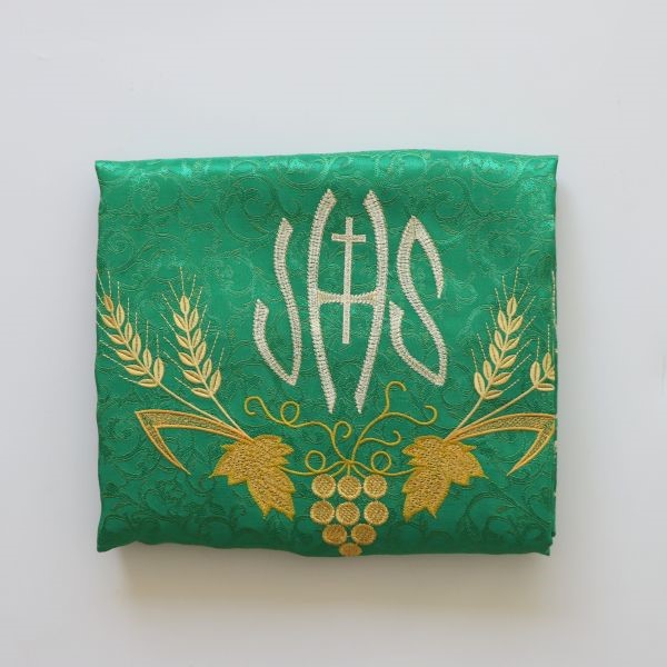 Welon bogato zdobiony haftem. Na welonie oprócz głównego haftu (na plecach), są również hafty po bokach. Zapięcie: klamra/haftka.