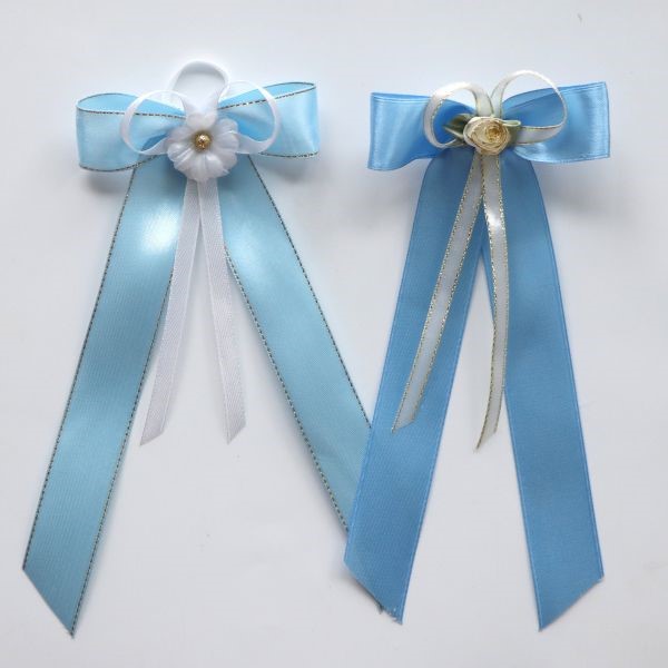 Wstążka dekoracyjna z atłasu w kolorze niebieskim.