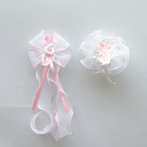 Bardzo ozdobna wstążka/stroik dekoracyjna z tiulu w kolorze różowym.